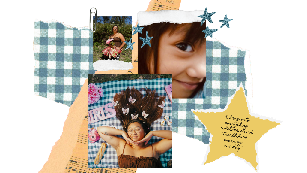 “I am such a nostalgic and sentimental girl,” lynn explains. listing out everything from birthday cards to fortune cookies and photo clippings. “I hang onto everything whether or not it will have meaning one day,” she then continues.
